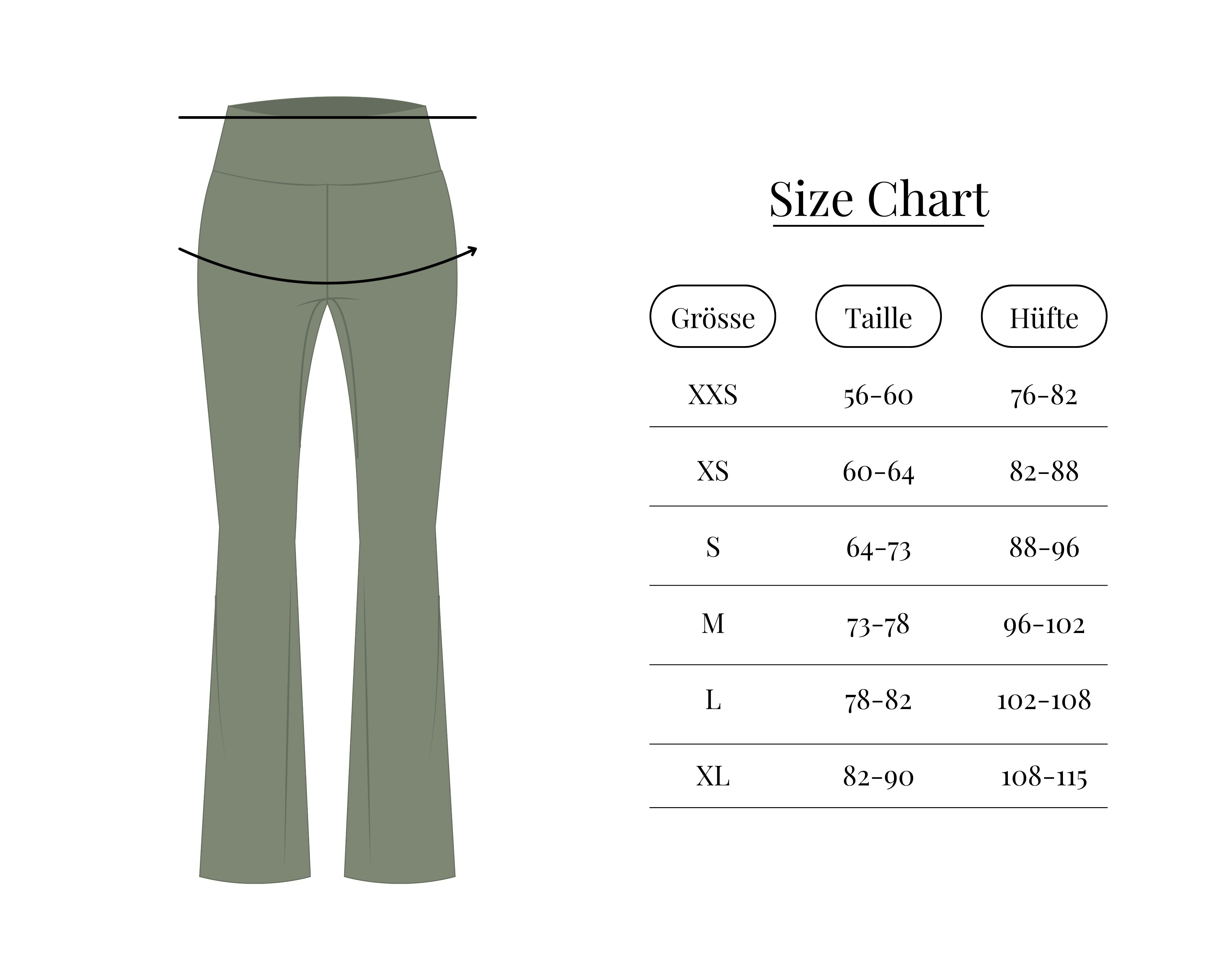 True to size! Wähle die Größe, die du in Hosen am häufigsten wählst. Wenn du zwischen zwei Größen schwankt, wähle eher die größere Größe.